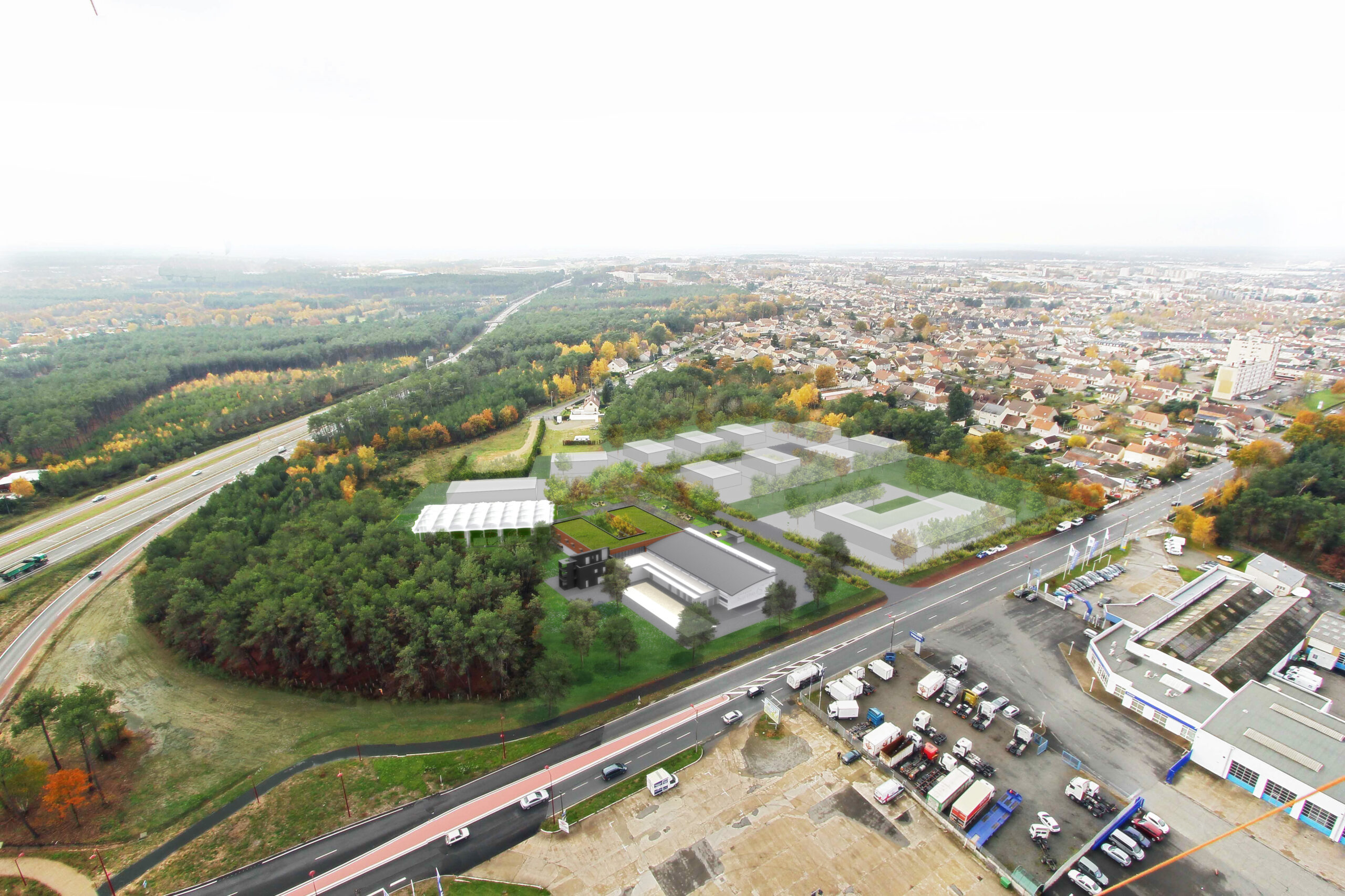- La volonté de s’impliquer de façon militante au développement durable nous conduit à concevoir un ensemble très compact formé par la remise, les bâtiments de vie, l’espace sportif et la maison à feux en un seul bâtiment comprenant deux entités : sport d’un côté et CS + Maison à feux de l’autre reliés par un angle permettant le désaxement conforme aux implantations sur les parcelles voisines.